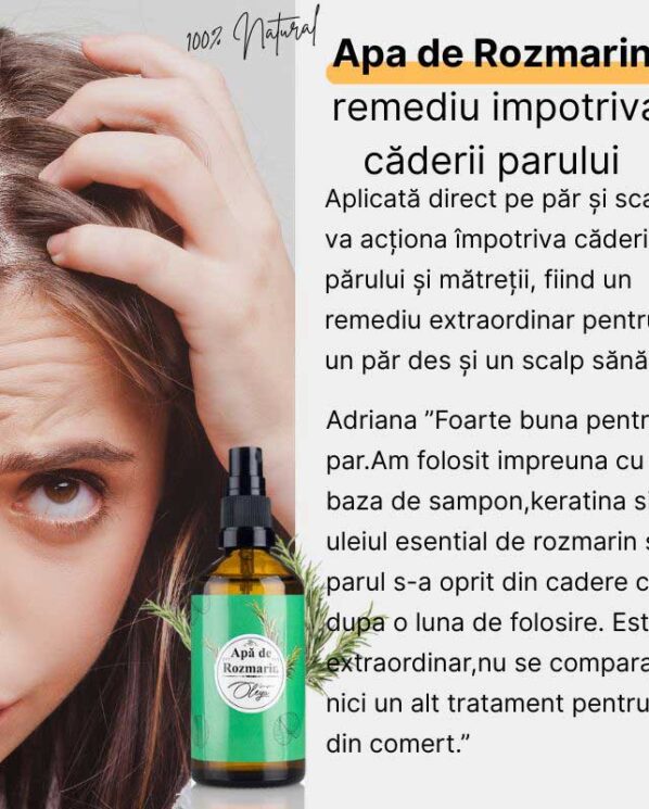 - Calitate: 100% natural, fără tratamente chimice, Apa de Rozmarin